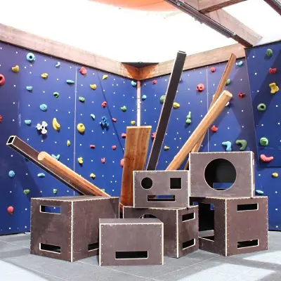 Die Bewegungsbaustelle besteht aus mehreren speziell angefertigten Kisten, Balken und Brettern und kann von Kindern selbst gestaltet werden. Sie können sich Hindernisse und Geschicklichkeitsspiele ausdenken und zusammen ihre Ideen konstruieren. Wir freuen uns sehr über dieses neue Angebot und sagen: Vielen Dank!