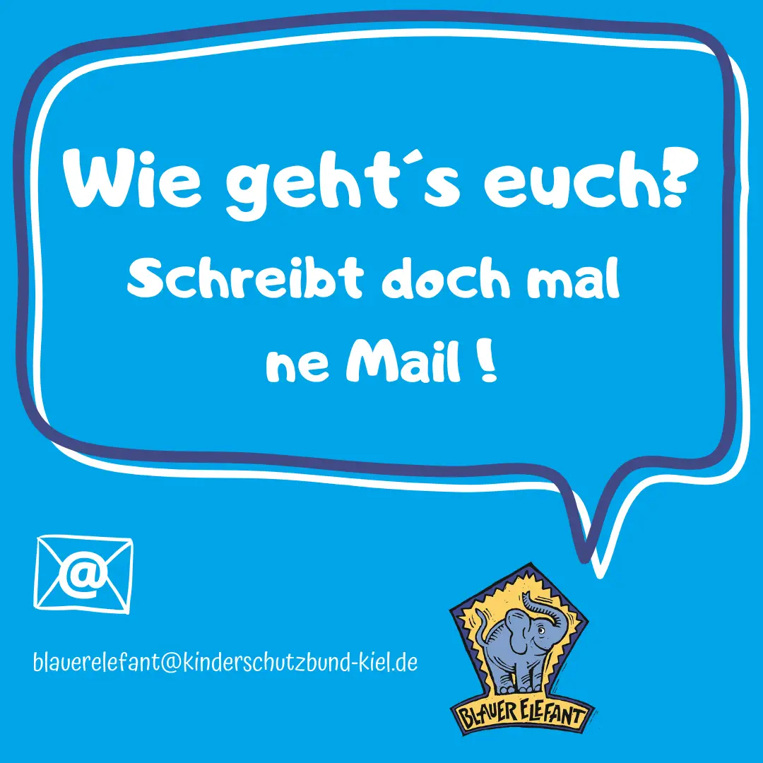 Auch wenn das Kinderhaus Blauer Elefant leider geschlossen haben muss, möchten wir für euch da sein. Gibt es etwas, das euch bedrückt? Wie verbringt ihr die Zeit zu Hause? Freut ihr euch noch über die verfrühten Ferien oder ist es schon langweilig?